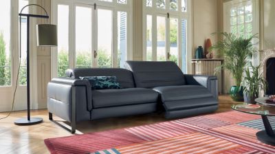 Découvrez le canapé Eminence, alliance élégante de confort et de technologie. Recouvert de cuir de vachette, ce modèle dispose d’assises de relaxation électrique avec commandes individuelles. Ses têtières réglables permettent d’ajuster facilement et rapidement votre position pour profiter d’un moment de détente. Son piétement métal anthracite ajoute une touche moderne à son design. ...