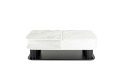 Hambourg est une table basse modulable et fonctionnelle avec ses dinettes recouvertes de céramique Fiorentino qui s'élèvent jusqu'à 60 cm de hauteur. Sa structure astucieuse en laque brillante blanche offre deux grands rangements fonctionnels. Sa fine base dissimule des roulettes permettant de la déplacer facilement. ...