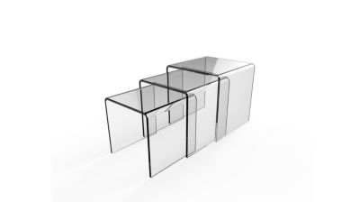 L’ensemble OLIVEA se compose de trois tables gigognes en verre transparent non coloré.