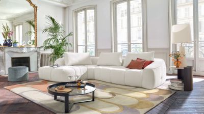 Le canapé Ondulation est un modèle au design arrondi qui offre une variation de profondeur d’assise. Son matelassage, son capitonnage, sa jetée de coussins et la générosité de ses accoudoirs procurent immédiatement un effet cocooning auquel vous ne saurez résister. Il est doté de 3 gros coussins rectangulaires avec un passepoil pour plus de relief. Choisissez votre angle, droite ou gauche. Disponible en 10 coloris, découvrez immédiatement celui qui sublimera votre intérieur. ...