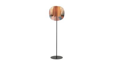 Abat-jour série Mika en métal laqué noir, revêtement cuivré et écran raphia.