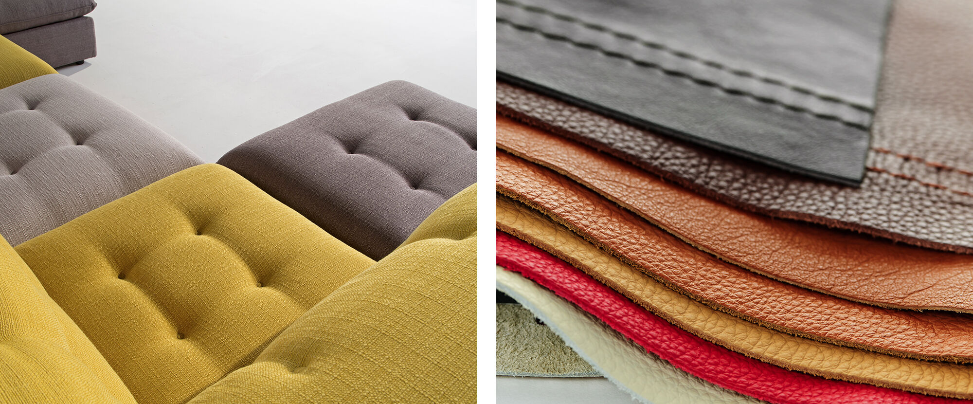 Un large assortiment de cuirs ou de tissus est disponible pour répondre aux besoins et goûts de chacun. Cuir de vachette ou de buffle. Cuir pleine fleur, pigmenté, grainé ou satiné… quel que soit le cuir, il a été sélectionné pour ses qualités esthétiques de résistance et de longévité. Tissus souples ou résistants, en microfibre ou en polyester, tous nos tissus sont traités antitache et ont été sélectionnés pour leur résistance et leur esthétisme.