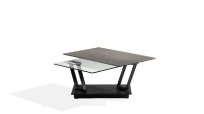 Plateau supérieur en céramique acier de 3 mm d'épaisseur collée sur verre de 6 mm d'épaisseur.