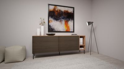 Buffet 2 portes, 2 tiroirs et 1 niche avec tablette, sur pieds métal 'corner' noirs Ht 15 cm