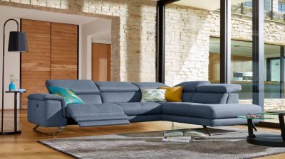 Découvrez le canapé Méridien, un modèle relaxation confortable et élégant. Son tissu est disponible en 8 coloris. L’assise relaxation et les têtières réglables offrent un confort optimal. Le piétement en métal chromé ajoute une touche de modernité à ce modèle familial. Choisissez la configuration idéale pour vous et votre salon grâce à l’option angle à gauche ou à droite. ...